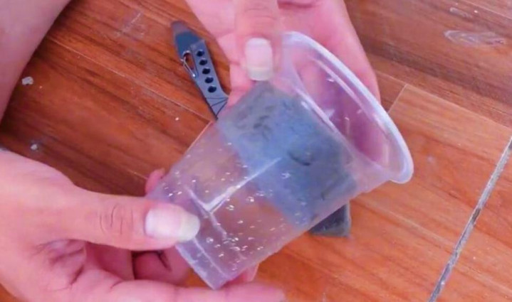 我们要在塑料杯里塞一块吸水棉或者丝瓜瓤,只要是能吸水的都行。